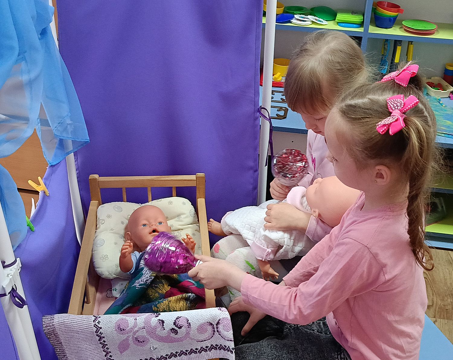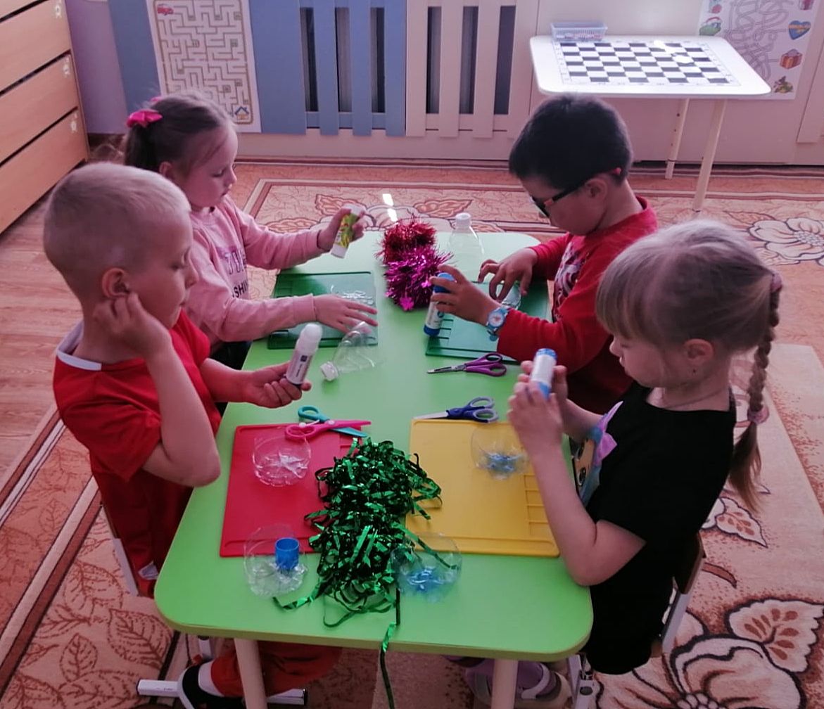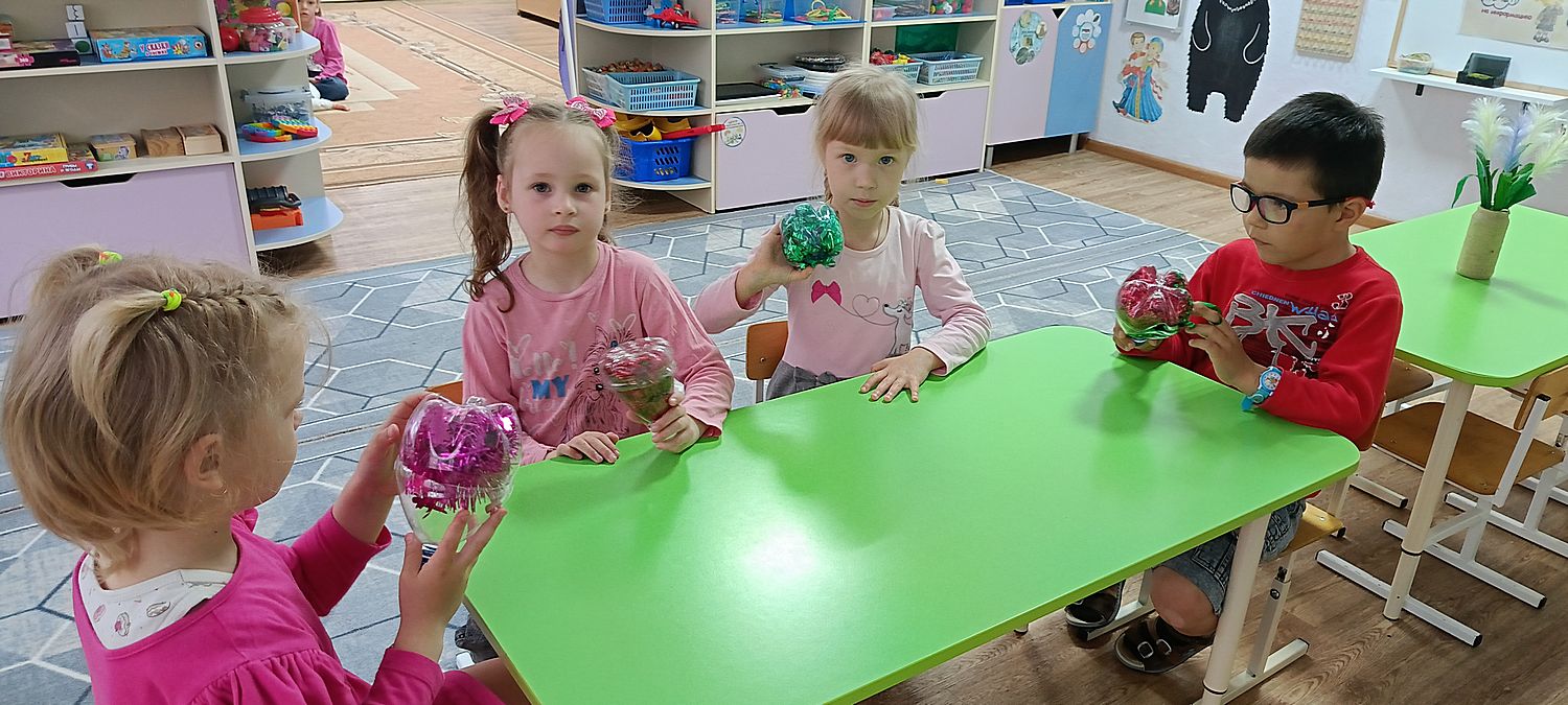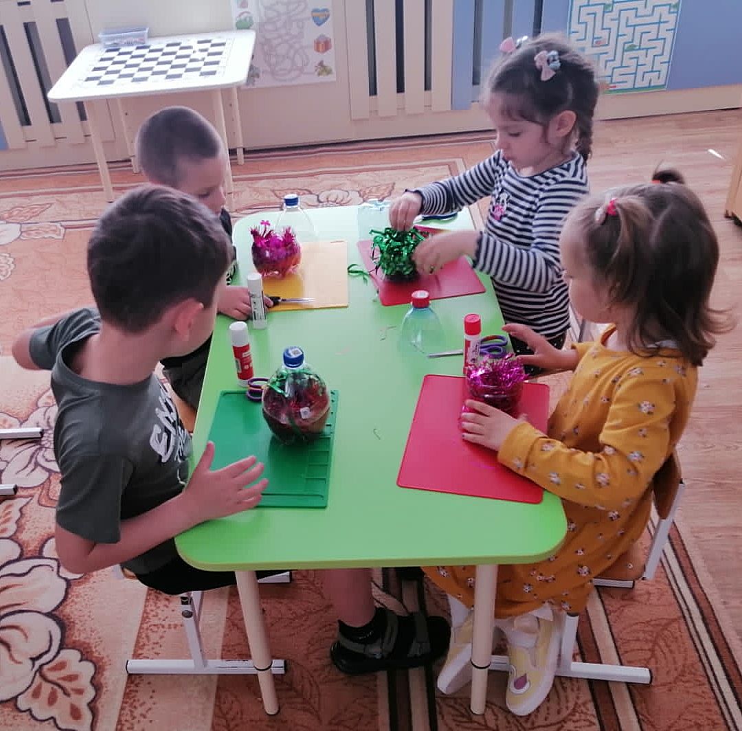 В рамках экологического просвещения ребята из старшей группы проявили свою креативность и заботу об окружающей среде. Они решили изготовить игрушки-погремушки из бросового материала — пластиковых бутылок и мишуры.